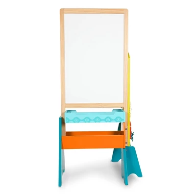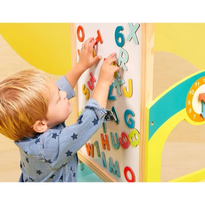 - Whiteboard & Chalkboard: Write or doodle on the whiteboard or the chalkboard, practice the alphabet with 26 magnetic letters, and count to 9 with magnetic numbers!