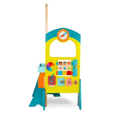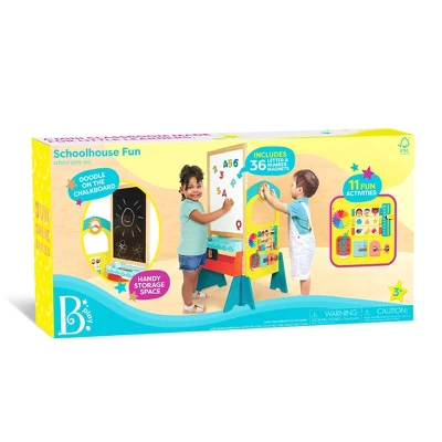 Learning just got waaaaay more fun with the Schoolhouse Fun set from B. play! Made as a mini classroom, this set comes with a ton of educational features for little learners to explore. Children can write or doodle on the whiteboard or the chalkboard, then play with 36 magnetic letters and numbers. They can also tell time with a clock, spin a color wheel, tie shoe laces, open little doors, play with a ruler, and flip wooden tiles that feature colors, shapes, foods, and friendly faces. All of these educational activities can help kiddos learn about the alphabet, practice counting, discover different shapes or colors, and improve their fine motor skills while they’re at it. Not to mention, the Schoolhouse Fun set also includes handy storage bins made with learning or art supplies in mind! Recommended for kids 3 years and over.