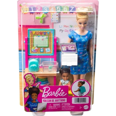 - ·Barbie teacher doll has a laptop so she can help her students learn virtually, too! There’s even a classroom pet turtle who comes in a clear, open container