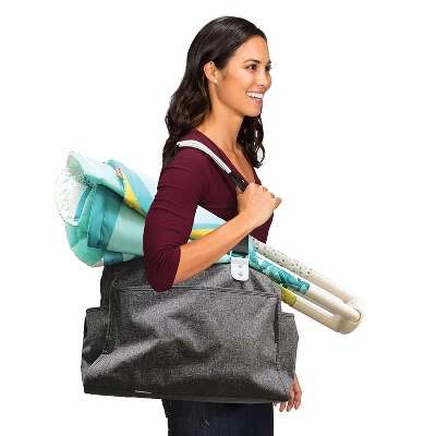 Babies will go gaga for this soft, inviting play space. Encourage new skills such as visual tracking, reaching, grabbing, tummy time, and rolling with four repositionable toys, peek-a-boo mirror, pillow and musical monkey. Battery-free wind & play musical monkey toy spins. Mirror, tummy time pillow, and linking toys transition to multi-use car seat and stroller toys! Folds up so you can take a clean, engaging play space with you wherever you go.