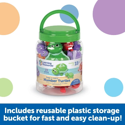 The Snap-n-Learn turtles offer children an engaging way to sharpen fine motor skills while learning numbers, shapes, and colors. Match the momma turtle with the corresponding baby turtle. Each baby turtle fits under the momma turtle’s shell for extra hide-and-seek fun. Includes 5 two-piece momma turtles, 5 shells, and 5 baby turtles. We’re Learning Resources®, and we’ve been helping parents and teachers build generations of amazing kids since 1984. From ABCs and 123s to fine motor and STEM skills, our educational toys offer kids the building blocks they need to succeed in school and develop a lifelong love of learning. Discover countless ways to learn through play with our award-winning products, including Toy of the Year winners Tumble Trax®, Botley® the Coding Robot, and Coding Critters™.