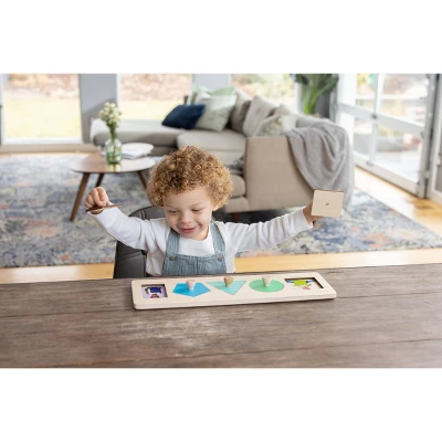 Lovevery® combines the best of neuroscience and Montessori philosophy to create stage-based toys that support your child’s brain development. The Friends of All Shapes Puzzle will engage your child—and build important milestone skills—starting at 16 months. Over the coming months, your child may gain the cognitive ability to match the shapes in this 5-piece peg puzzle. Over time, they’ll be able to see the difference between the square and the rectangle, and the triangle and pentagon. Be amazed by all your child can accomplish—and have fun learning together through play. Includes a free Digital Play Guide and access to expert content with purchase.
