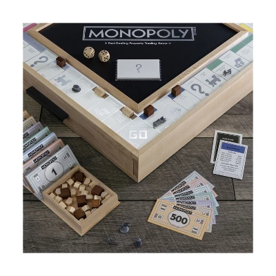 This Monopoly Luxe Edition combines beauty and elegance with the world’s premier property trading game. This gorgeous edition features a solid maple wood cabinet with an integrated storage drawer and die-cast metal drawer pull. The striking foil-stamped Monopoly gameboard is built into the cabinet and includes a framed center area for rolling dice.Richness abounds in this stylish set with several other premium components, including a solid maple banker’s tray, plated die-cast metal tokens, deluxe Monopoly money, wood houses and hotels, custom foil-stamped Chance and Community Chest cards, and deluxe Title Deed cards.