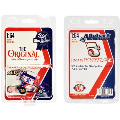 Brand new 1/64 scale diecast car model of Winged Sprint Car #5W Lucas Wolfe “Pabst Blue Ribbon” Lucas Wolfe Racing “World of Outlaws” (2022) die cast model car by ACME.Brand new box.Real rubber tires.True-to-scale detail.Detailed interior, exterior.Officially licensed product.Exclusive team packaging.Comes in clamshell packaging.Manufacturer’s original unopened packaging.Made of diecast metal with some plastic parts.Clamshell packaging can be opened and closed.Dimensions approximately L-2.25, W-1, H-1.5 inches.